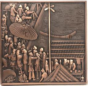 材質(zhì):H62銅,厚度10—15mm尺寸:客戶實(shí)際尺寸定制制作工藝:整板雕刻;銅花配件:銅花開模鑄壓成 ..